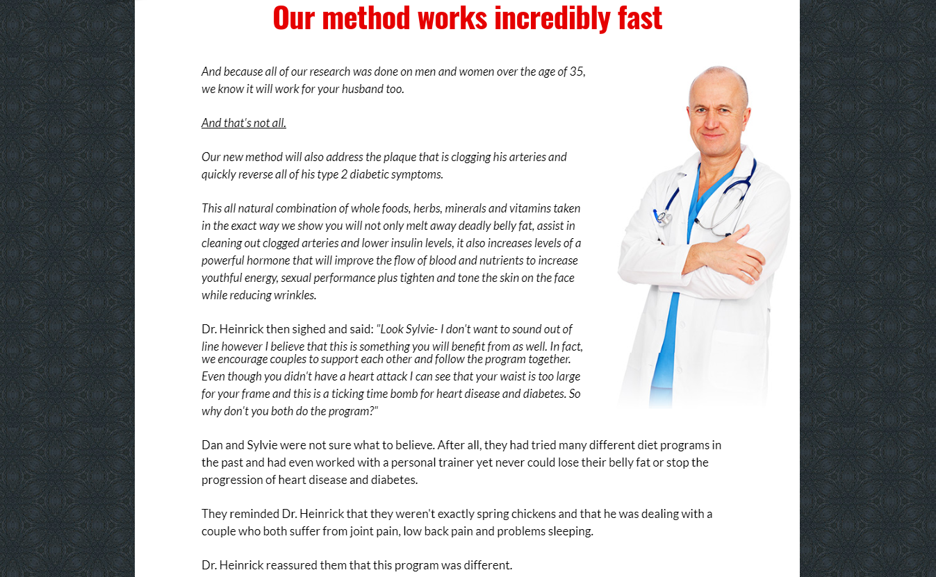 While simultaneously reversing the symptoms of diabetes, saving him from the deadly effects of heart disease and restoring the youthful energy, sex drive and vigor that was believed to be lost forever.